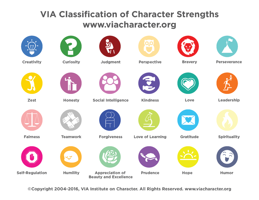 同為正向心理學派的祖師爺,Christopher Peterson,他和Margin Seligman研究了古今中外人類共同的天賦優勢與美德(Virtues),發現有24個共通的天賦優勢,後來發展成一個測驗叫The VIA (Values In Action Classification of Strengths, VIA)survey。